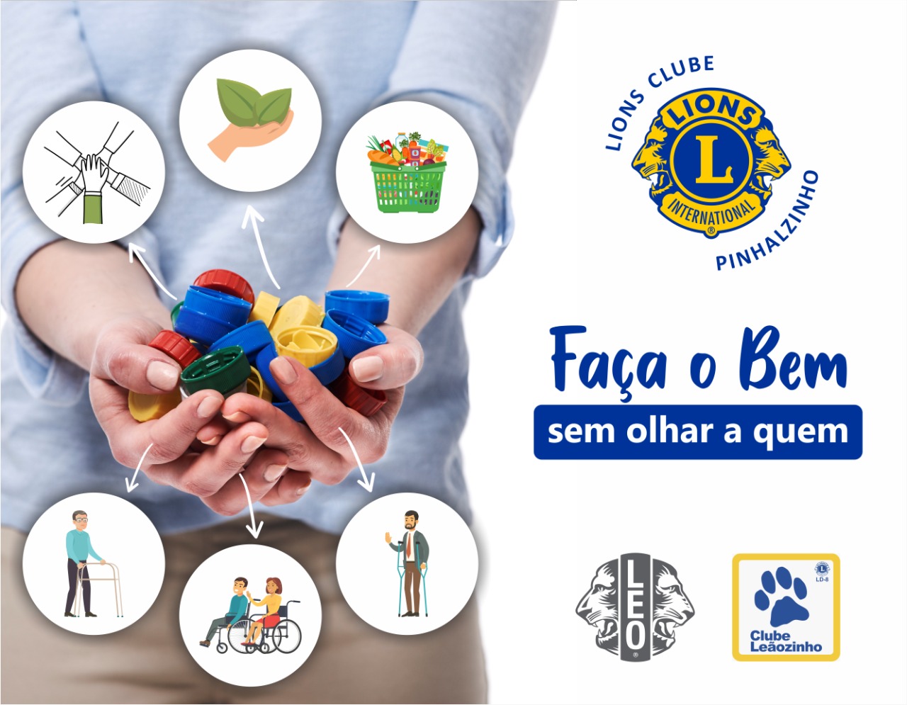 Tema: Faça o Bem Sem Olhar a Quem Descrição do Projeto Recolhemos tampinhas para revenda, onde as arrecadações são revertidas em projetos sociais, manutenção de empréstimos de cadeiras de rodas, banho, andadores e muletas sem custo aos usuários, bem como em formação de lideranças dentro do LEO Clube, também beneficiamos alunos de escolas com exames de visão e quando necessário doações de óculos. Temos inúmeras ações de voluntariado, podendo acompanhar nossas